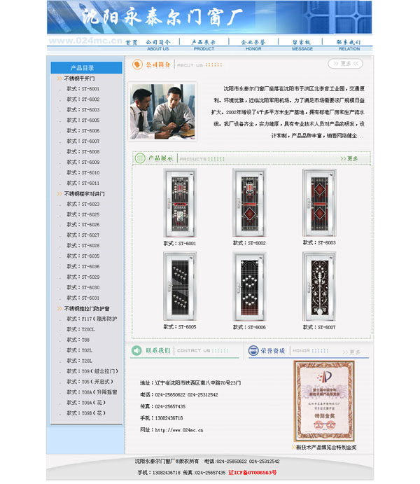 我廠的產(chǎn)品每年均由沈陽市質(zhì)量監(jiān)督檢驗(yàn)所定期檢驗(yàn),曾在2002年第十屆中國專利新技術(shù)產(chǎn)品博覽會(huì)上榮《特別金獎(jiǎng)》,我廠生產(chǎn)的不銹鋼防護(hù)窗現(xiàn)已成形,多種型號(hào)系列產(chǎn)品,在市場知名度和銷量的占有率均達(dá)到令人滿意的程度。目前產(chǎn)品銷往遼寧、吉林、黑龍江、江蘇、山東、浙江、河南、河北、內(nèi)蒙等地。